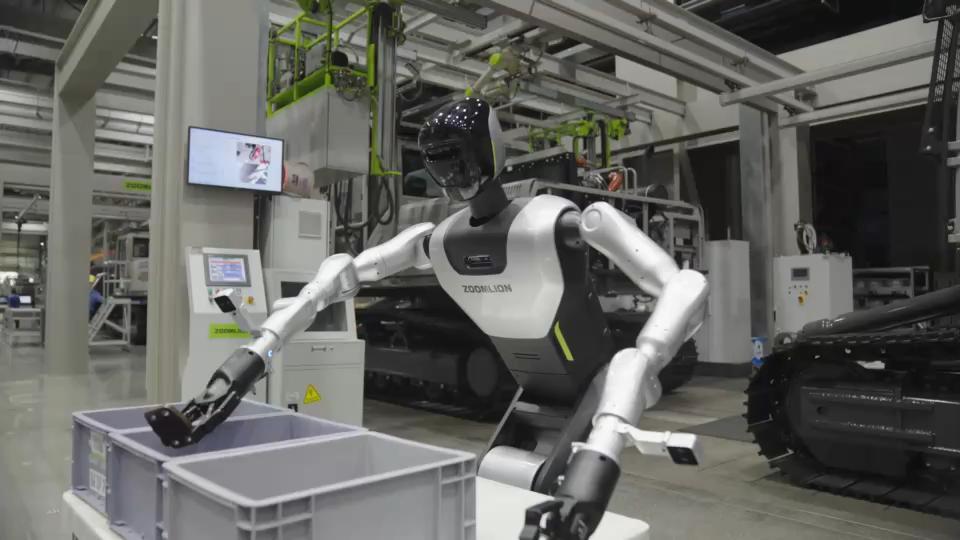 ▲中聯重科自主研發的人形機器人在裝配產線作業