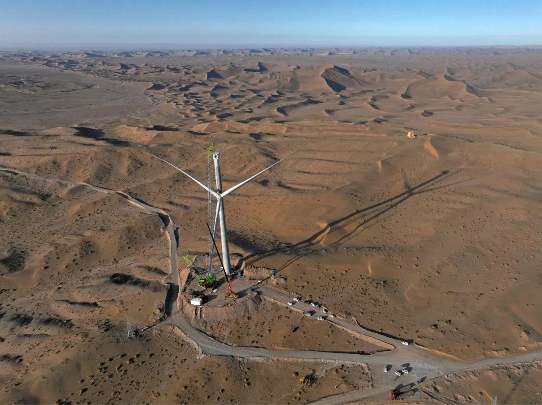 巴丹吉林沙漠為世界**三大沙漠,也是中國**二大沙漠,位于內蒙古自治區西部的銀額盆地底部,四季多風、風能密集,但風速相對較高和周圍的沙漠環境也為項目吊裝施工帶來了作業窗口期時間短、對設備性能要求高等難題。施工方綜合工況、設備性能、設備運輸等多方面情況,**終選擇了具備吊裝性能強大、工況適應廣泛、拆裝運輸便捷等優勢的中聯重科ZCC11800履帶起重機。