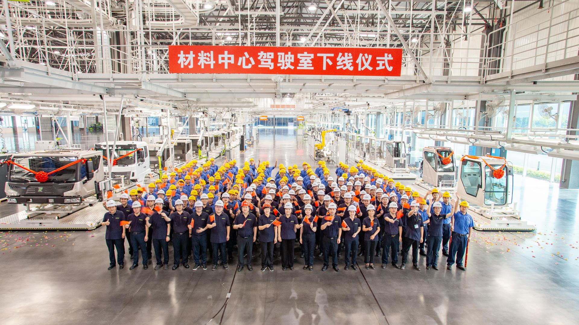 ▲中聯(lián)智慧產(chǎn)業(yè)城材料中心駕駛室下線儀式現(xiàn)場(chǎng)