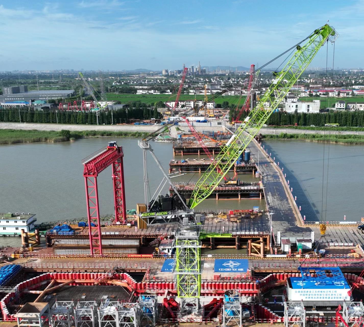 據了解,張靖皋長江大橋后續還將迎來中聯重科打造的全球首臺超萬噸米塔機W12000-450和R8000-320等多臺超大型塔機的傾情助力。這些大國重器將為這一大國工程建設提供堅實的設備保障。
