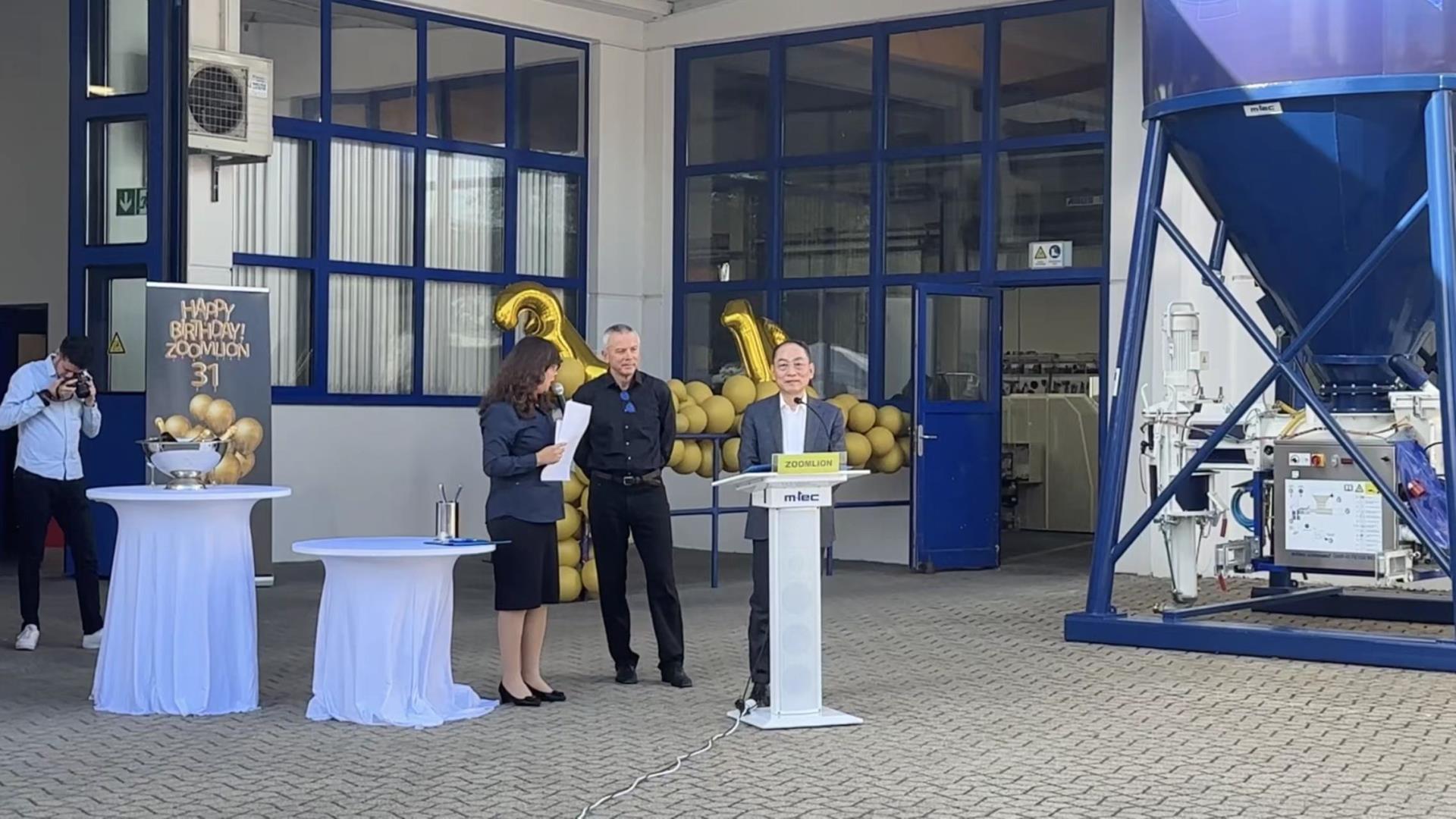 大家下午好!今天是中聯(lián)重科31歲生日,這是我們共同的節(jié)日。我很高興能在紐因伯格和m-tec的同事們一起慶祝公司的生日。也非常感謝m-tec的同事們的精心布置和周到安排。今天,不僅是在德國(guó)、在中國(guó),還有在世界其他30多個(gè)國(guó)家的中聯(lián)重科園區(qū),大家都在用自己的方式慶祝中聯(lián)重科的生日。在這里,我代表中聯(lián)重科,向m-tec的全體同事致以節(jié)日的問(wèn)候!向全球30多個(gè)國(guó)家的3萬(wàn)名員工致以節(jié)日的問(wèn)候!