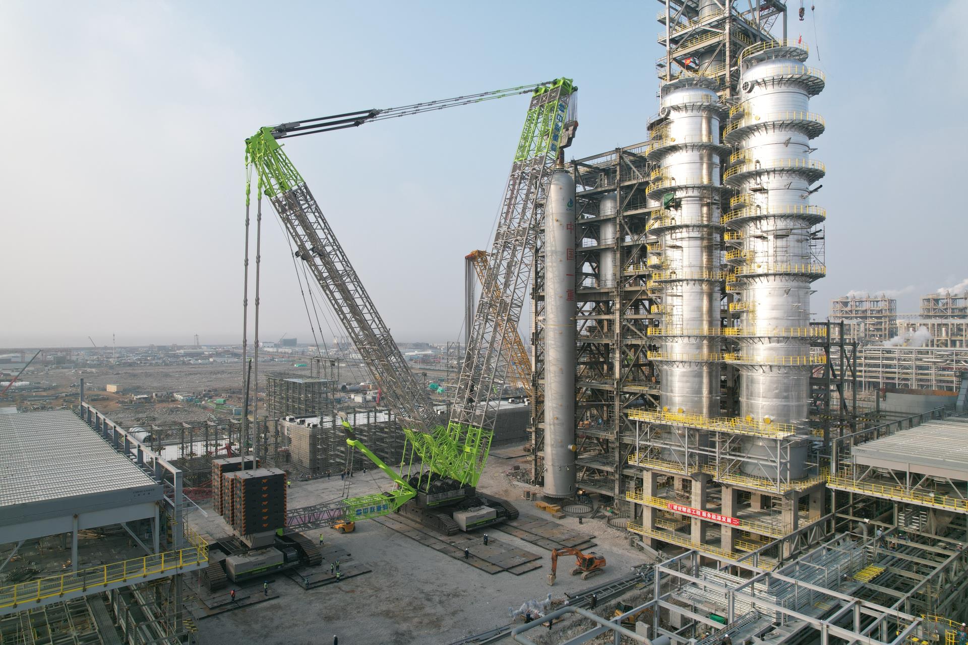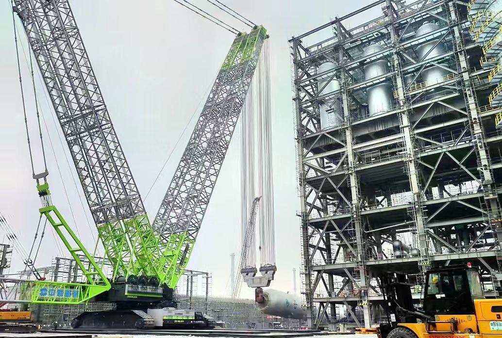 1月3日至8日,中聯重科3600噸履帶起重機圓滿完成浙江石化新材料工程3號300萬噸/年漿態床渣油加氫裝置“三器三分兩塔”中的3臺漿態床反應器吊裝任務,創造了履帶起重機單機吊裝重量和吊裝速度雙紀錄,彰顯出“大國重器”的出眾實力。