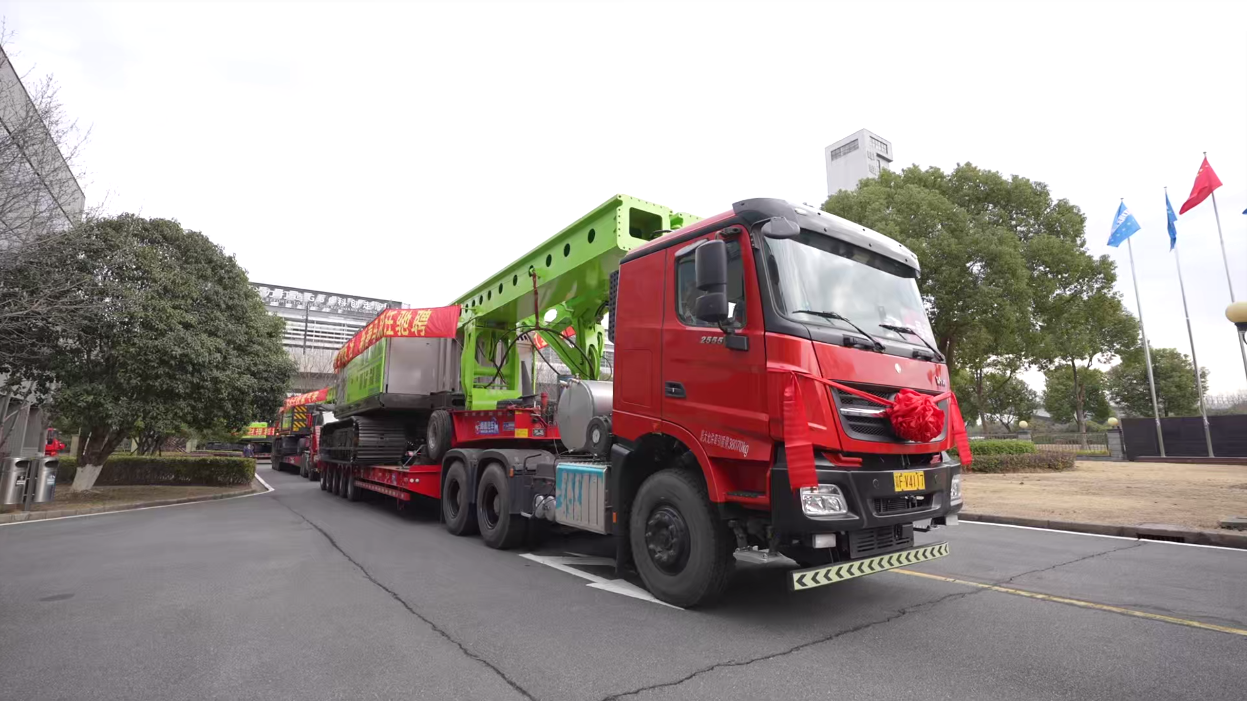 中聯重科2024年開門紅活動當天,中聯重科工程起重機公司在泉塘工業園、麓谷園區、常德漢壽園區同步舉行發車儀式,200余臺、總金額達2.8億的履帶吊、汽車吊、隨車吊等產品的發貨車隊排成長龍從各生產園區出發,助力全球建設。