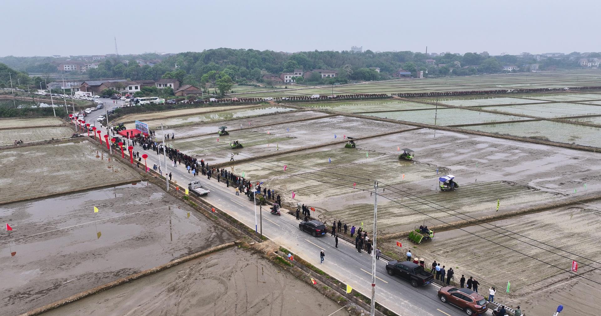 ▲中聯(lián)重科水稻機插秧“演武”現(xiàn)場