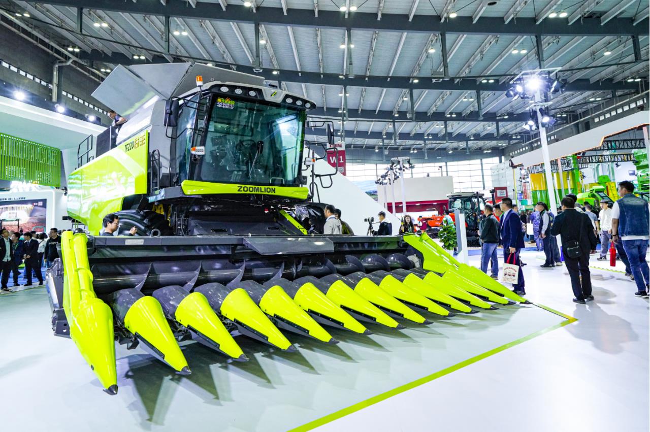 ▲中聯(lián)重科打造的國內(nèi)**大喂入量收割機和400馬力混合動力拖拉機