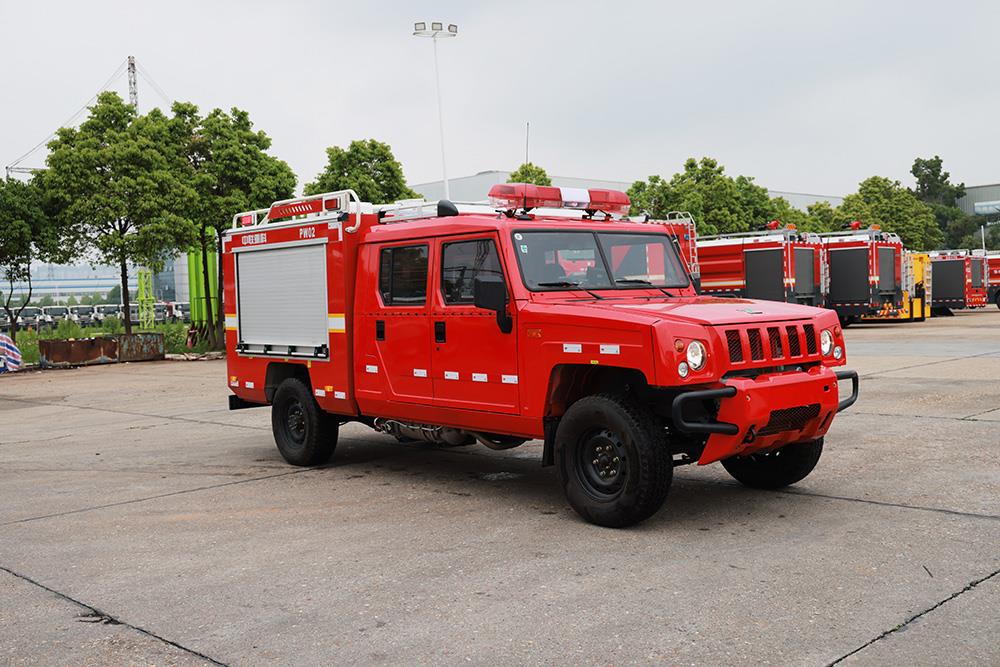 中聯重科PW02A6“平戰接合型”水霧消防車,在救援隊伍行進時,起突前救援及通信作用。搭載高性能細水霧模塊,實現前期火災的撲救,實現打早打小;搭載車載電臺與后方無線語音通信,對救援車隊起到引導作用。還可搭載危險氣體偵測設備、車載絞盤、倒伏式照明燈等器材設備。該消防車由北汽勇士(四驅)改制而成,動力強勁,能適應泥濘、破損等復雜路況,適用于消防、公安、地震等應急救援場景。