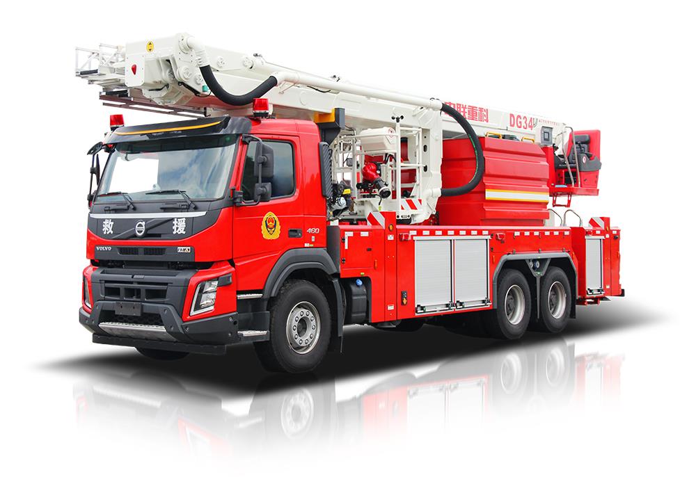 中聯重科DG34型登高平臺消防車,結合國際上消防車的先進理念和消防實戰經驗創新設計而成,具備強大的高空救援和消防滅火能力,整車性能優越,快速高效,操作性、安全性及智能化控制處于國內領先水平。